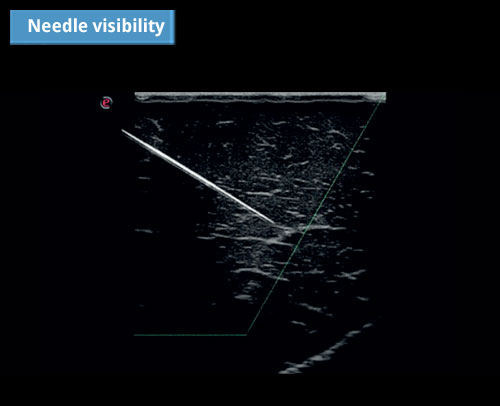 Biopsy, nerve block, center line guide is improved with Needle Enhancement – makes the needle clearly distinguishable from the surrounding tissues